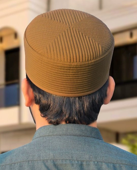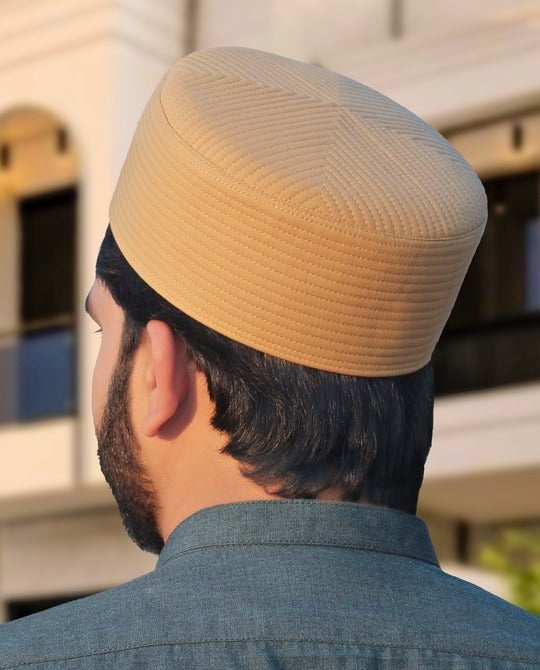 This handmade prayer cap features a stylish, textured design crafted from premium cotton. Its intricate pattern adds a touch of elegance while maintaining the simplicity ideal for daily use. Lightweight and breathable, this cap ensures all-day comfort while offering a secure fit. It's also fully washable, making it easy to maintain and perfect for regular wear. This cap complements any outfit while providing both style and practicality during prayers.